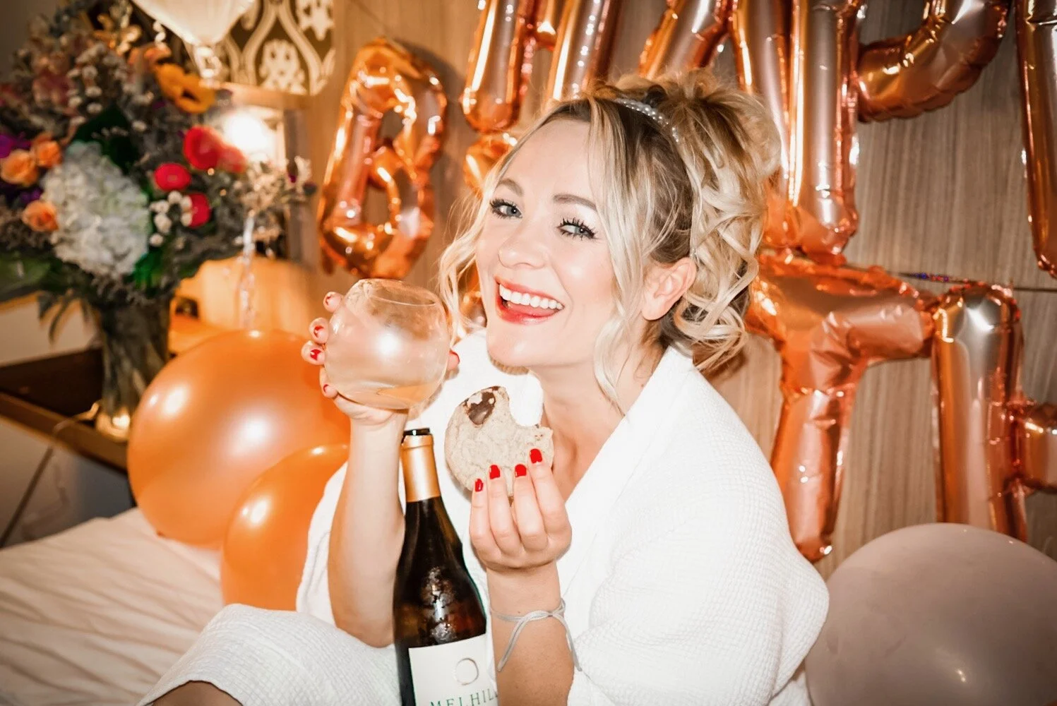 Who needs a fancy dress and fancy restaurant when you have a hotel robe and cookies?